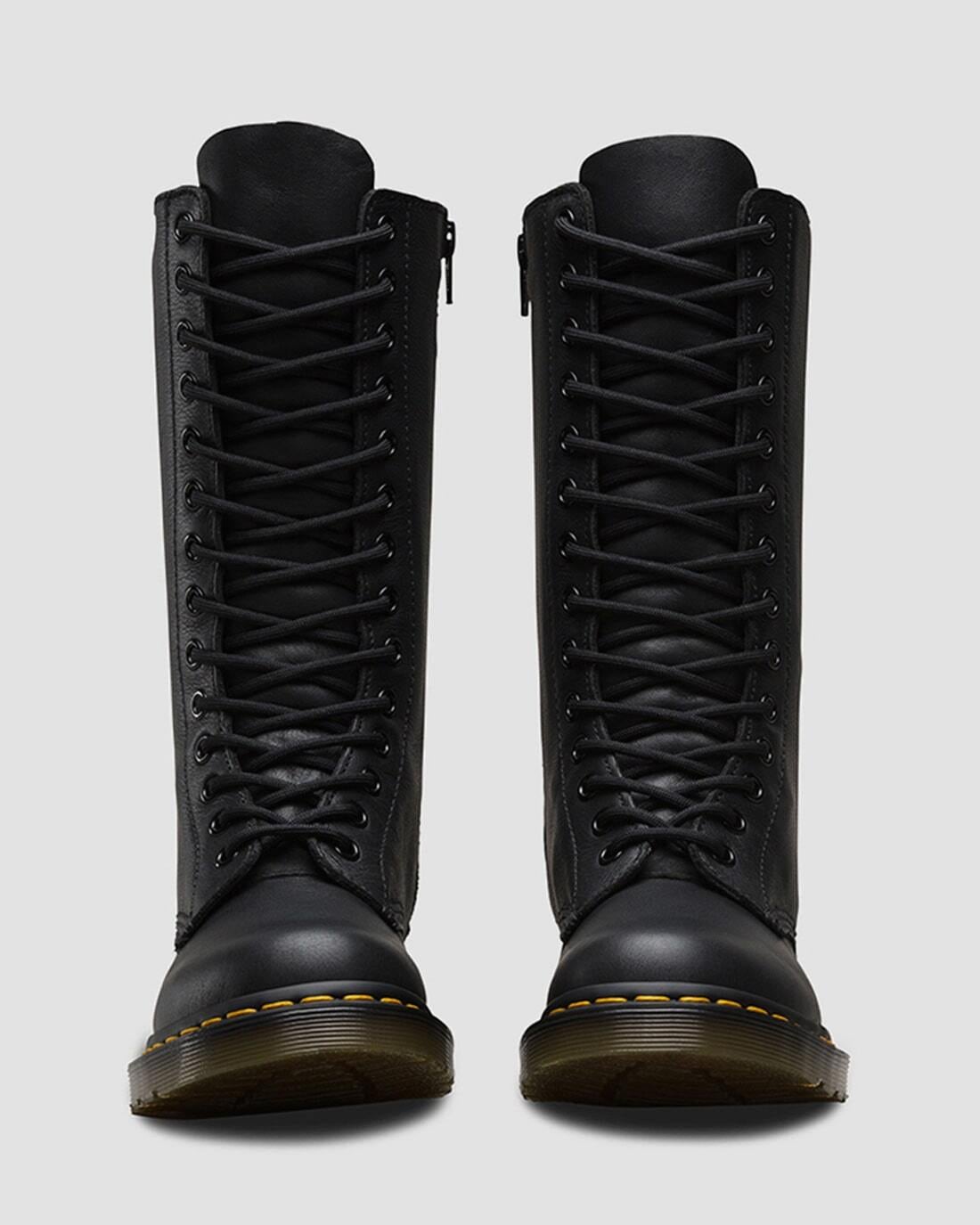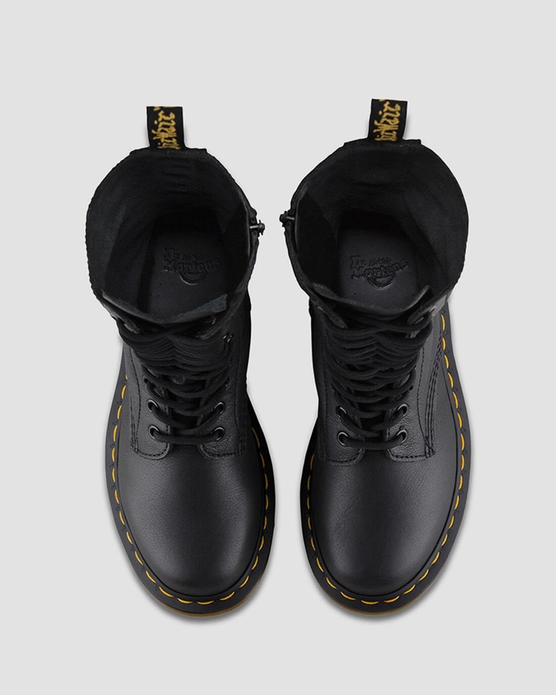 パンクにインスパイアされ、反抗的な姿勢を表現している「1B99 14ホールブーツ」脱ぎ履きを考慮してインサイドジップを施しているため、着脱が容易。アッパーには柔らかでしなやかなソフトレザーを使用しています。ドクターマーチンのDNAともいえるヒールループと、ウェルトのイエローステッチを施して仕上げました。