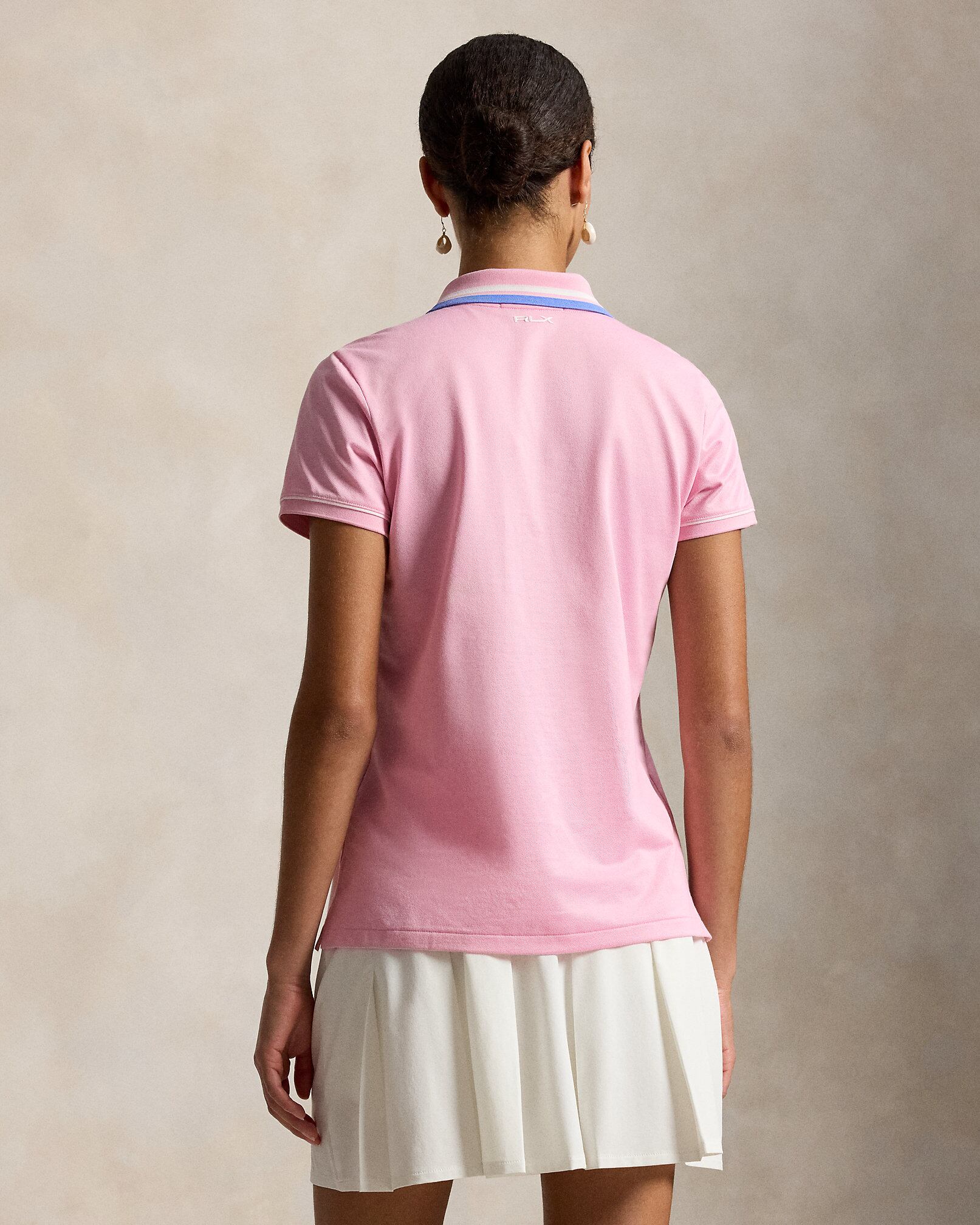 ウォッシュ加工で柔らかさをプラスしたジャージー製のテーラード フィット ポロシャツ。ストライプのティッピングとパイピングトリムでディテールをプラス。シグネチャーのポニー刺繍と、プリントと刻印で施した"RLX"のロゴを組み合わせたアイテム。