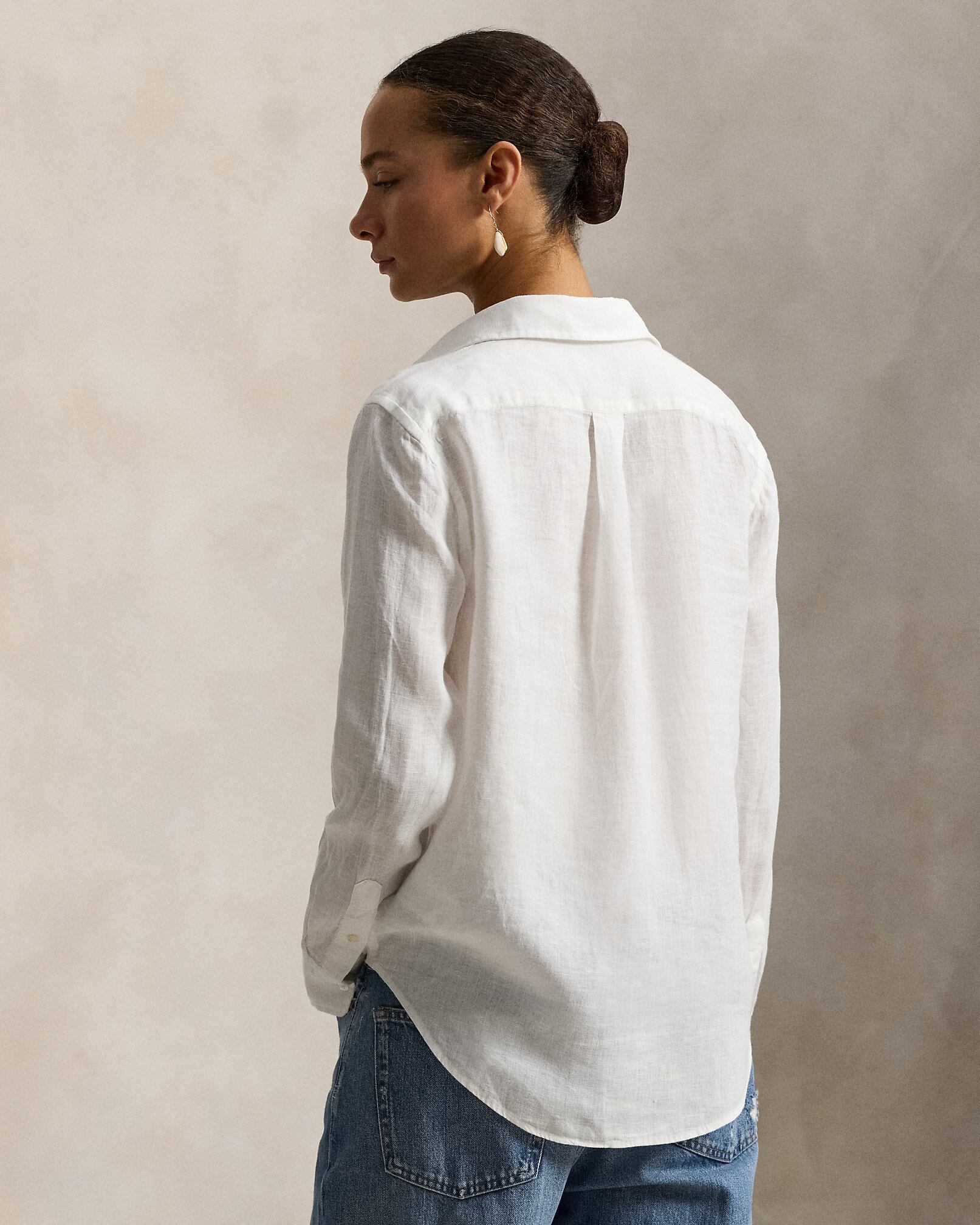 薄手のリネンで織り上げ、シェルボタンと緻密なシグネチャーのポニー刺繍のディテールを施したストレートフィットのシャツ。