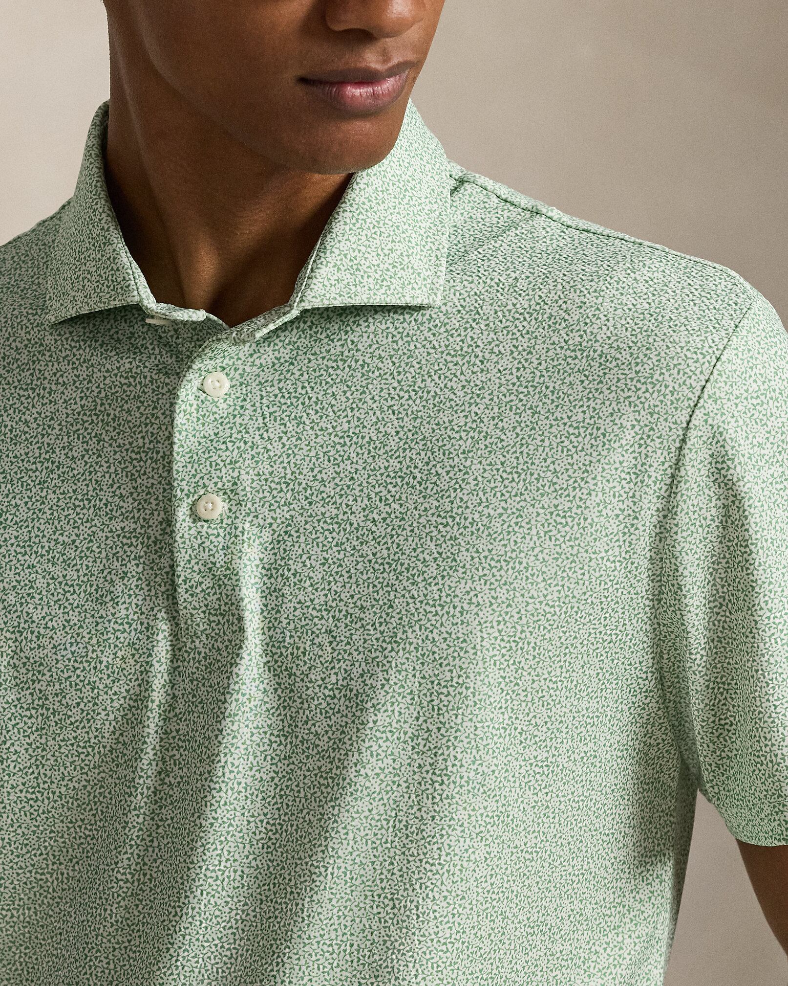 蒸れにくいストレッチジャージーを使用し、一日中快適な着心地を実現するポロシャツ。全体にあしらった蔓のモチーフの上品なプリントが、渦を巻く豊かな緑を思わせるアイテム。